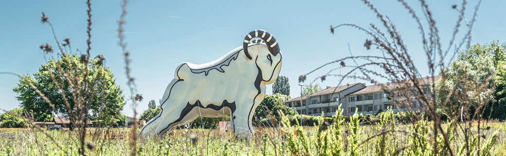 Les auteurs de l’installation Résistance ont choisi de symboliser la lutte en cours par un bélier gonflable en position de défense. Sans parti pris, bien sûr. Il s’agit seulement de donner une image impressionnante de la force de la nature (le bélier), qui se voit acculée sans espoir de pouvoir se réfugier dans un improbable ailleurs. Il ne manque à l’animal qu’une fumée s’échappant des naseaux, comme un taureau furieux de bande dessinée. Ce qui n’a pu se faire car il aurait fallu, alors, griffer les alentours pour amener un coûteux et pesant matériel. Mais ce bélier est bien seul. Il lui manque la brebis et l’agneau pour perpétuer la volonté de résistance.